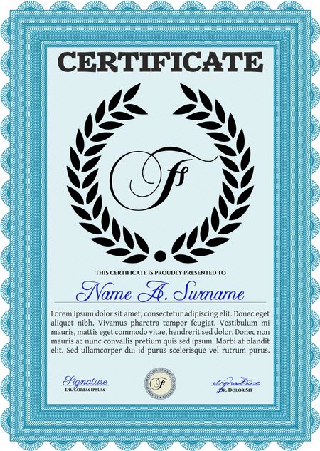 Diploma template or certificate template. Vector pattern that is used in money and certificate. Artistry design. With quality background. Light blue color.