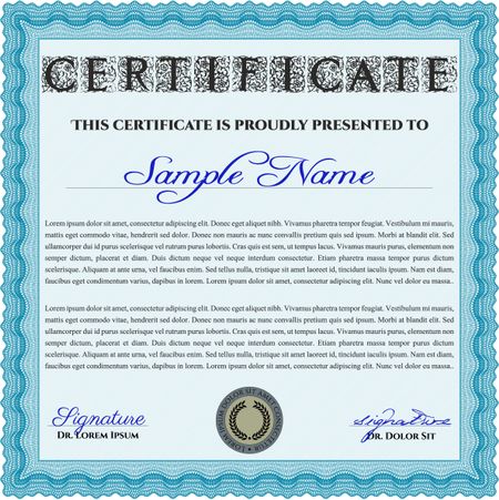 Diploma template or certificate template. Vector pattern that is used in money and certificate. Beauty design. With quality background. Light blue color.
