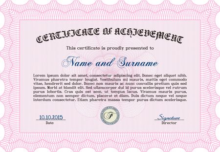 Diploma template. With complex background. Vector illustration. Lovely design. Pink color.