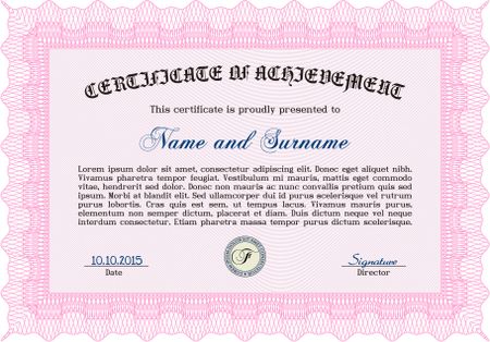 Diploma template. Excellent design. Border, frame. With background. Pink color.