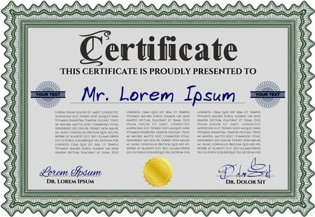 Diploma template. Excellent design. Vector illustration. With complex background. Green color.