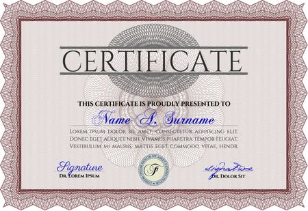 Diploma template. Lovely design. With complex background. Vector illustration. Red color.