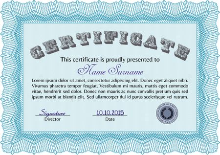 Diploma template. Modern design. With guilloche pattern and background. Border, frame.