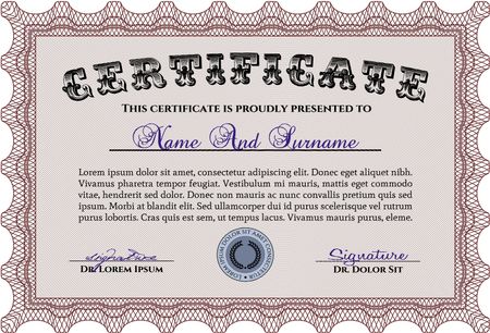 Diploma template. With quality background. Lovely design. Vector illustration.