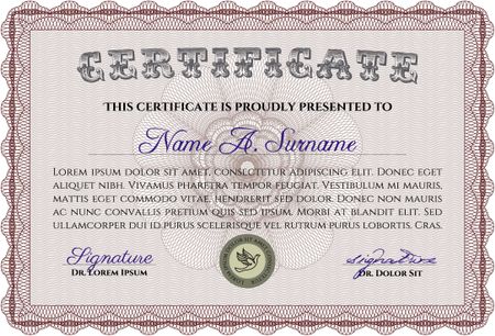 Diploma template. Vector certificate template.Superior design. With guilloche pattern.
