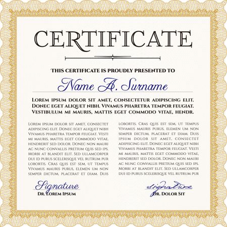 Diploma template. Vector illustration. Excellent design. With complex background. Orange color.