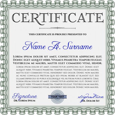 Diploma template. Vector illustration. Excellent design. With complex background. Green color.