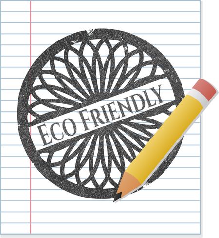 Eco Friendly emblem drawn with pencil effect on notebook paper
