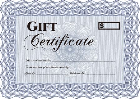 Formal Gift Certificate. Border, frame. Complex background. Lovely design.