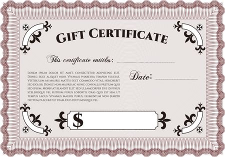 Formal Gift Certificate. Border, frame.Excellent design. With great quality guilloche pattern.