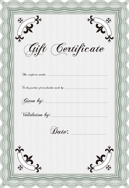 Formal Gift Certificate. Elegant design. Border, frame.Printer friendly.