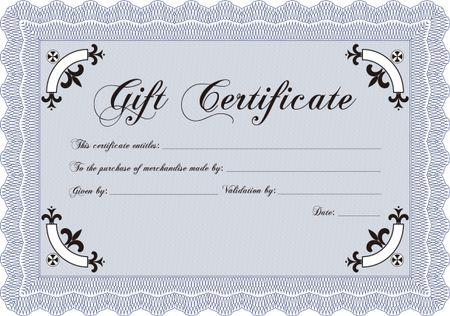 Formal Gift Certificate. Excellent design. With complex linear background. Border, frame.