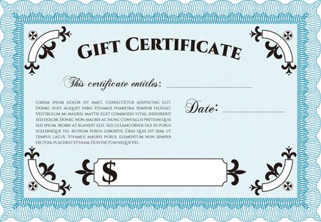 Formal Gift Certificate. Lovely design. Customizable, Easy to edit and change colors. Complex background.