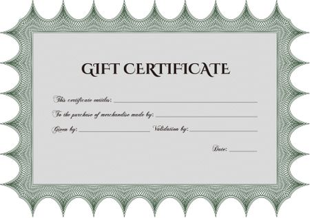 Formal Gift Certificate template. Elegant design. With guilloche pattern and background. Vector illustration.