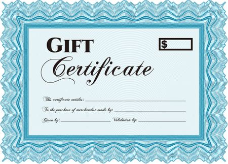 Formal Gift Certificate template. Good design. Printer friendly. Border, frame.
