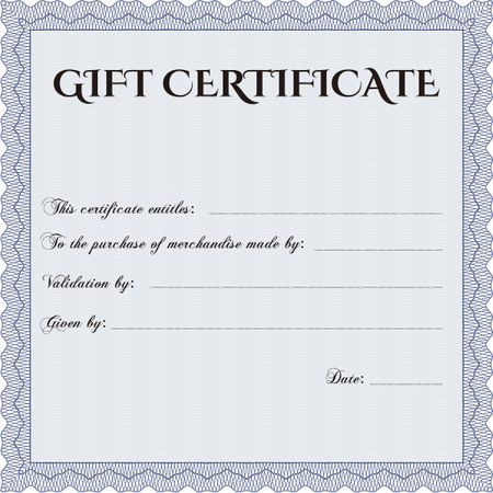 Formal Gift Certificate template. With guilloche pattern and background. Elegant design. Vector illustration.