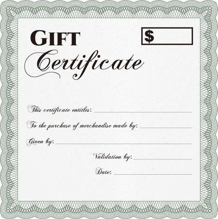 Formal Gift Certificate template. With guilloche pattern and background. Vector illustration. Elegant design.