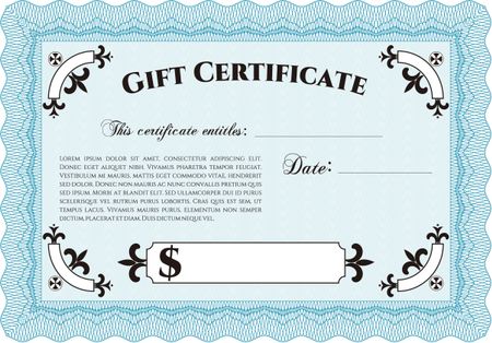 Formal Gift Certificate template. Sophisticated design. Vector illustration.With complex linear background.
