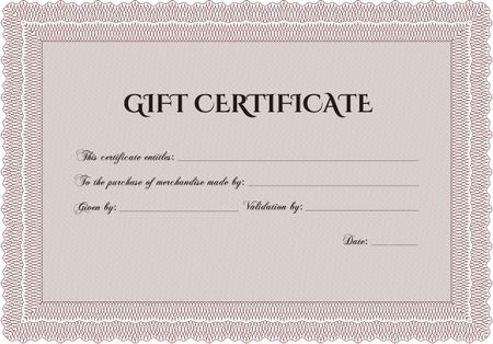 Formal Gift Certificate template. Vector illustration. Elegant design. With guilloche pattern.