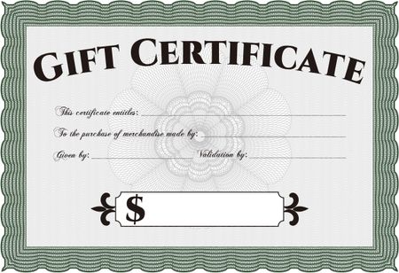 Formal Gift Certificate template. Vector illustration. Elegant design. With guilloche pattern.
