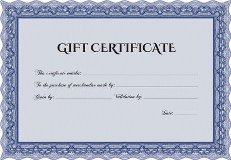 Formal Gift Certificate template. Vector illustration. Elegant design. With guilloche pattern.