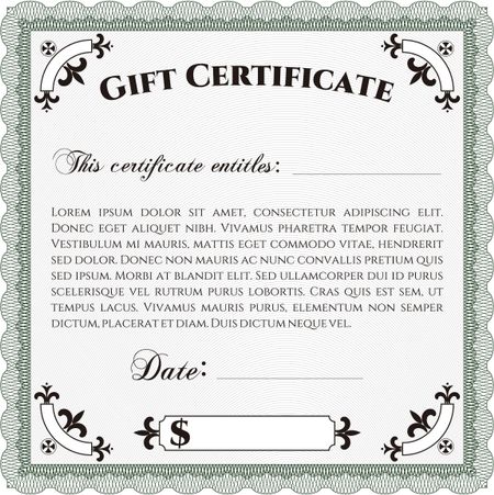 Formal Gift Certificate template. Vector illustration. With guilloche pattern. Elegant design.