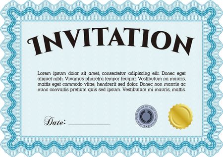 Formal invitation. Detailed.Nice design. With guilloche pattern and background.