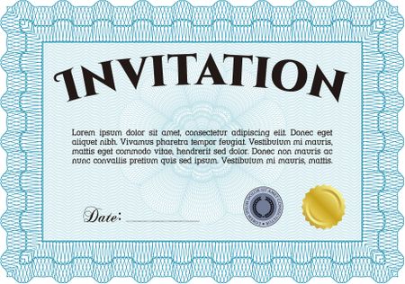 Formal invitation template. Border, frame.Elegant design. With guilloche pattern and background.