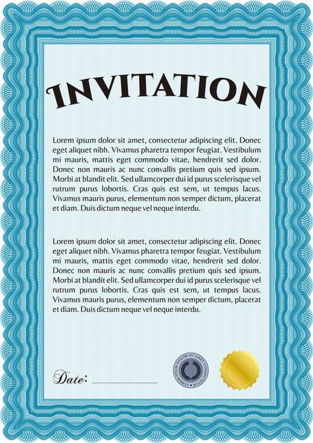 Formal invitation template. With complex linear background. Retro design. Border, frame.
