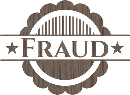 Fraud badge with wooden background