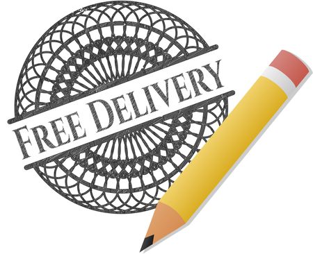Free Delivery emblem draw with pencil effect
