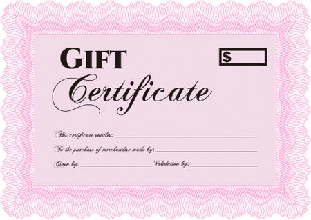 Gift certificate. Cordial design. Printer friendly. Detailed.
