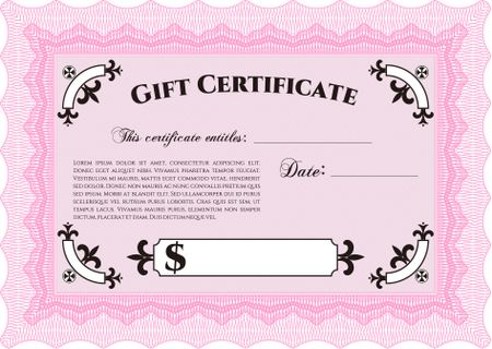Gift certificate template. Border, frame. Beauty design. With linear background.