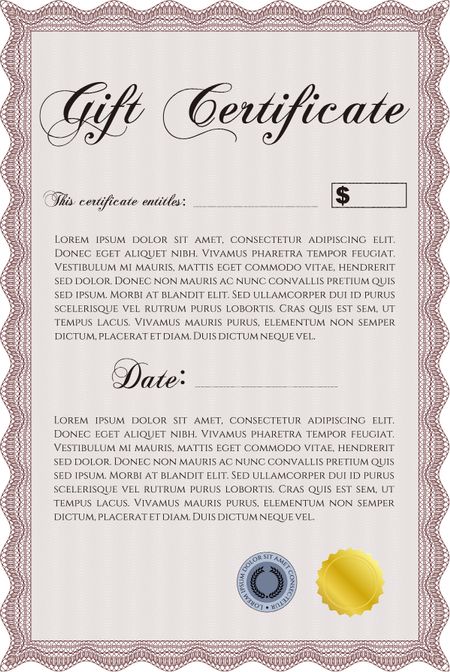 Gift certificate template. Border, frame. With linear background. Beauty design.