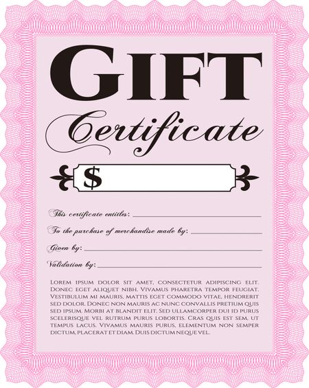 Gift certificate template. Border, frame. Superior design. With quality background.