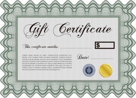 Gift certificate template. Complex design. Detailed. Printer friendly.