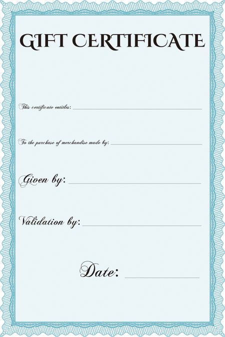 Gift certificate template. Detailed. Printer friendly. Complex design.