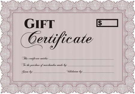 Gift certificate template. Elegant design. With guilloche pattern. Vector illustration.