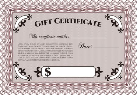 Gift certificate template. With guilloche pattern and background. Vector illustration.Complex design.