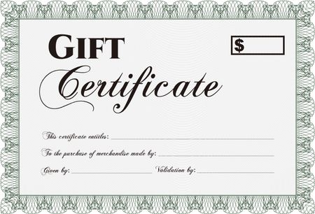 Gift certificate template. With quality background. Artistry design. Border, frame.