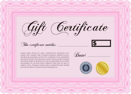 Gift certificate template. With quality background. Border, frame. Superior design.