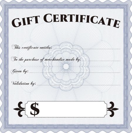 Gift certificate. Vector illustration.Cordial design. With great quality guilloche pattern.