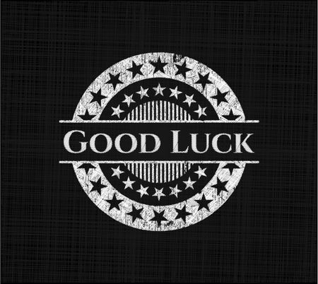 Good Luck chalkboard emblem written on a blackboard