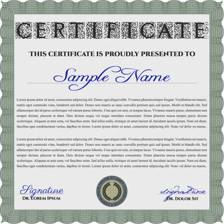 Green Awesome Certificate template. Award. Money Pattern. With great quality guilloche pattern.