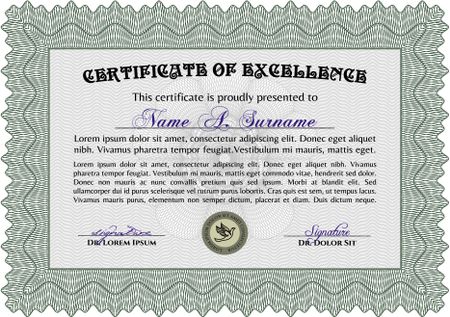 Green Awesome Certificate templateMoney Pattern. Award. With great quality guilloche pattern.
