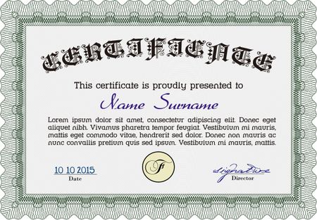 Green Certificate. Complex design. Detailed. Printer friendly.