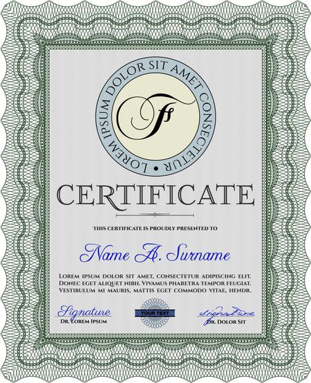 Green Certificate. Complex design. Printer friendly. Detailed.