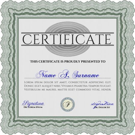 Green Certificate or diploma template. Good design. With background. Border, frame.