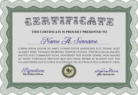 Green Certificatem diplmoa or award template. With guilloche pattern. Design template. Money style design.
