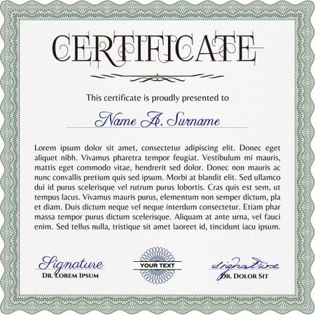 Green Classic Certificate or Diploma template. Money Pattern design.
